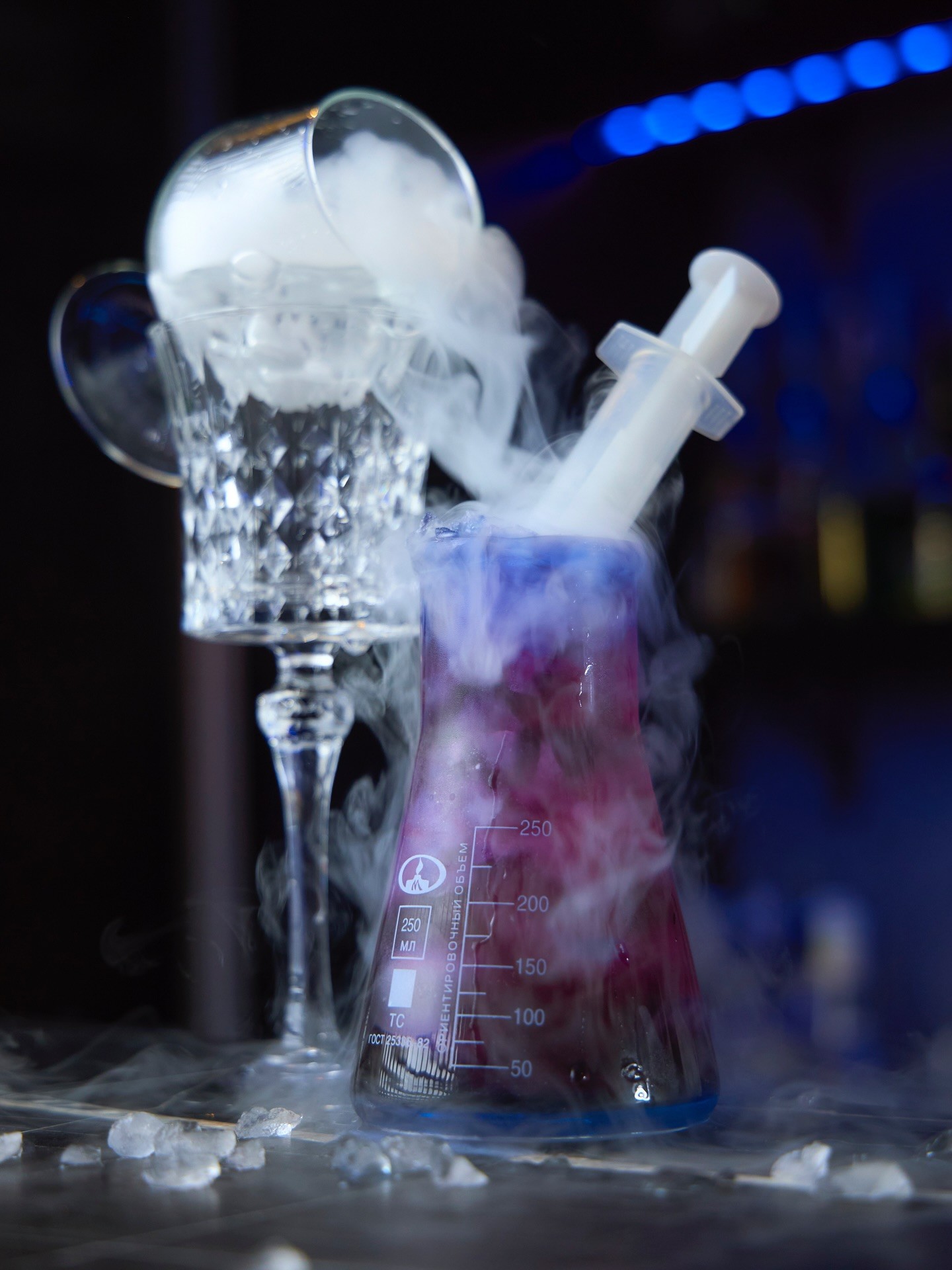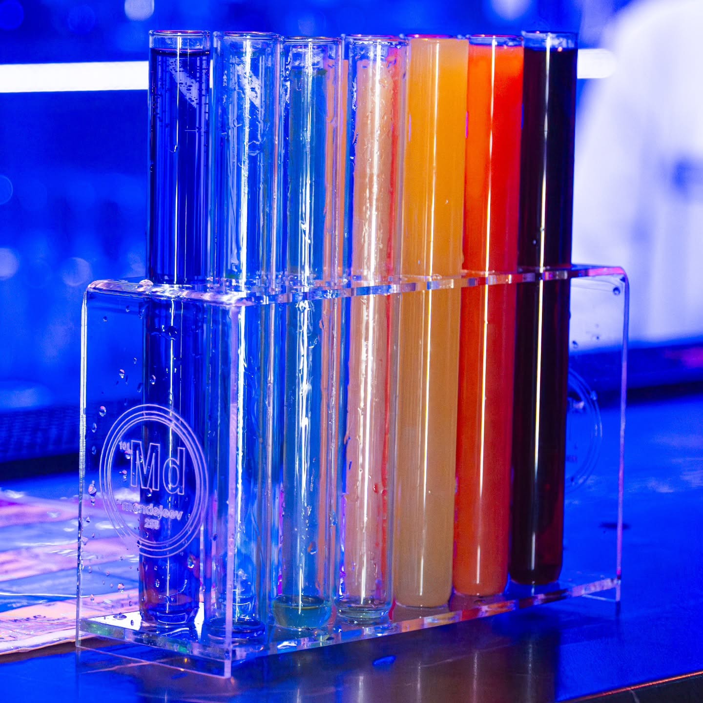 Бар «Менделеев» в Гродно — атмосферное заведение в стиле лаборатории. Гостям предлагают авторские шоты и коктейли в пробирках.