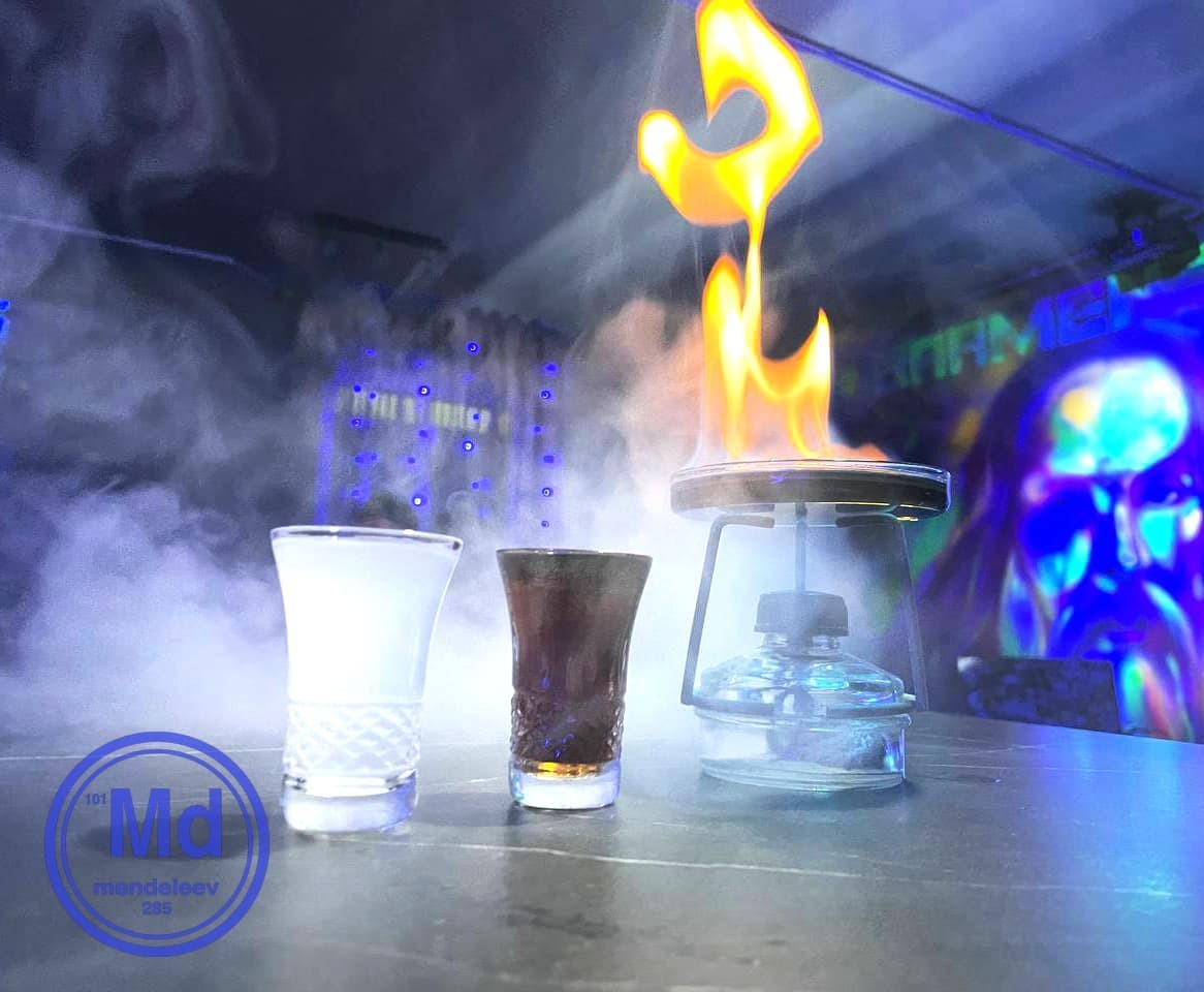 Бар «Менделеев» в Гродно — атмосферное заведение в стиле лаборатории. Гостям предлагают авторские шоты и коктейли в пробирках.