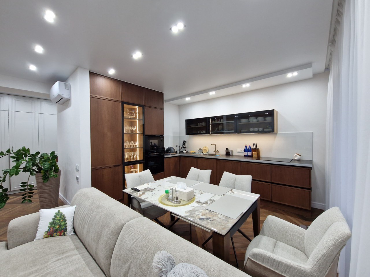 При заказе мастера дают также проект всей разводки электрики для кухни, розеток, выводы воды, канализации, вытяжки и плитки. А для большего удобства вместе с кухней в Grand можно заказать еще и всю необходимую встраиваемую технику Exiteq и Maunfeld, стулья и столы.